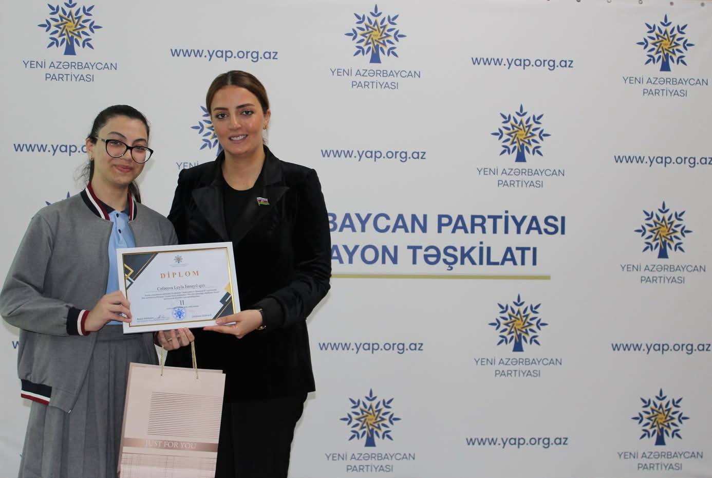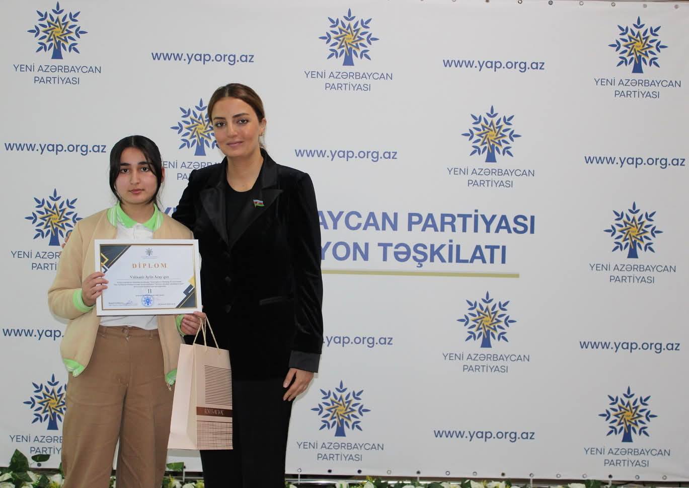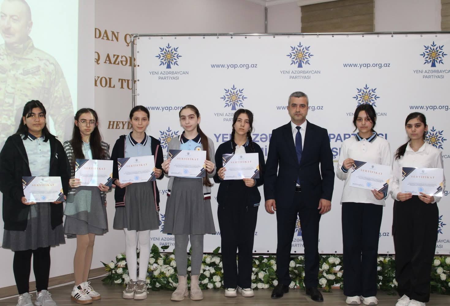 Çıxışlardan sonra “Dirçələn Qarabağ, abadlaşan Xocalı” mövzusunda keçirilmiş rəsm və inşa müsabiqəsinin qaliblərinin təltif olunması mərasimi keçirilib. Məlumat verilib ki, Nizami rayonunda fəaliyyət göstərən 30 təhsil müəssisəsi üzrə inşa müsabiqəsinə 71, rəsm müsabiqəsinə isə 49 iş daxil olub.