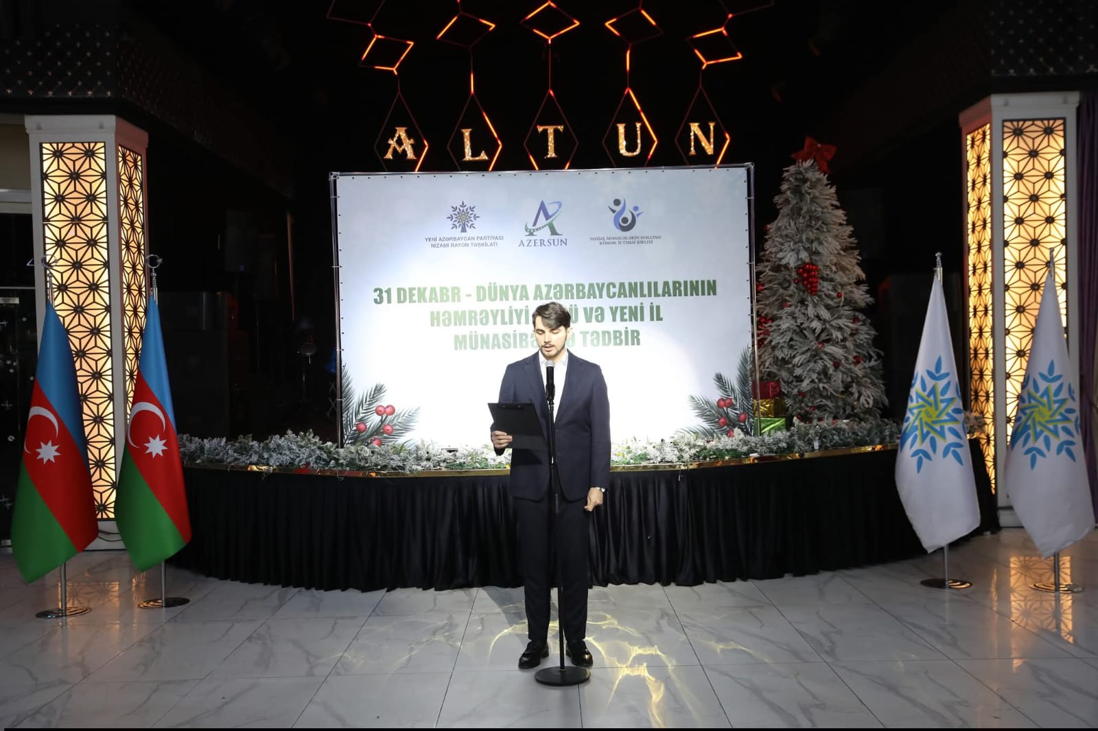 Azərbaycan Respublikasının Dövlət Himninin səsləndirilməsi ilə başlanan şənliyin rəsmi hissəsində Yeni Azərbaycan Partiyası Mərkəzi Aparatının rəhbərinin müavini Ramilə Bədəlova, Milli Məclisin deputatı, “İki sahil” qəzetinin baş redaktoru Vüqar Rəhimzadə, Nizami Rayon İcra Hakimiyyəti başçısının birinci müavini Könül Həsənova, Yeni Azərbaycan Partiyası Nizami rayon təşkilatının sədri Ramil Vəlibəyov, 1 saylı Uşaq evi sosial xidmət müəssisəsinin direktoru Nərminə Zöhrabova, Azərsun Holdinqin İnzibati təsərrüfat departamentinin bölmə rəisi Könül Bəkirova, “Sosial məsələlərin həllinə kömək” ictimai birliyinin sədri Nərmin Daşdəmirbəyli və başqaları çıxış ediblər, uşaqları bayram münasibətilə təbrik ediblər.